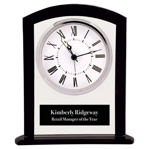 Executive Silver/Rosewood Piano Finish Clock w/2 Pens & Letter Opener