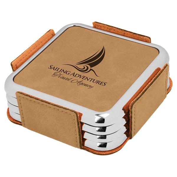 Silver Edge Leatherette Coaster Set - Square